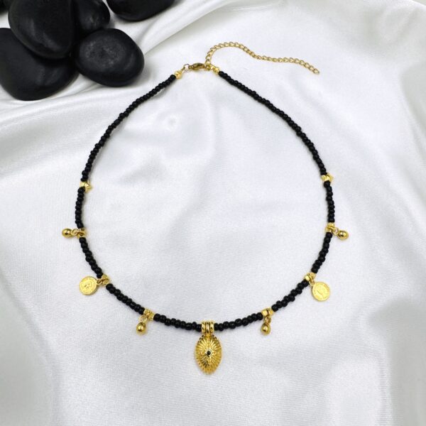 Υλικό: Γυάλινες χάντρες και στοιχεία από επιχρυσωμένο (24Κ) ορείχαλκο