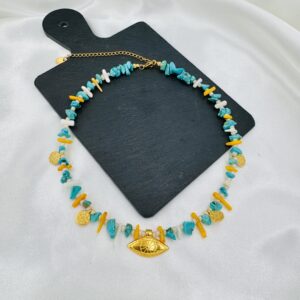 Υλικό: Ημιπολύτιμες πέτρες και στοιχεία από επιχρυσωμένο (24Κ) ορείχαλκο